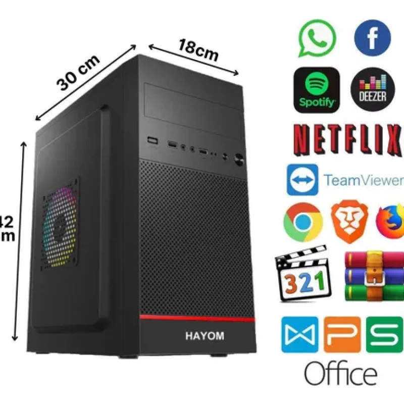 Excelente computador para uso doméstico ou empresarial, com gabinete tipo mini que cabe em qualquer espaço e com design moderno e muito bonito. Tecnologia com baixíssimo consumo de energia. Computador enviado configurado e pronto para uso.